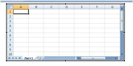 Теперь на экране должна появиться специальная Ексель таблица. Выглядит она примерно так, как на фото ниже: