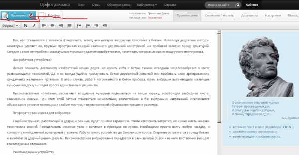 Ну а в целом работа на сервисе несложная. Вставляем статью, которую нужно проверить на орфографию в поле и нажимаем кнопку проверить.