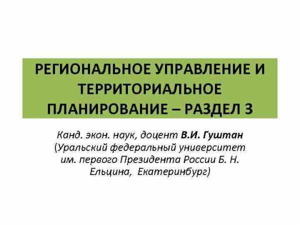 РЕГИОНАЛЬНОЕ УПРАВЛЕНИЕ И ТЕРРИТОРИАЛЬНОЕ ПЛАНИРОВАНИЕ – РАЗДЕЛ 3 Канд. экон. наук, доцент В. И. Гуштан (Уральский федеральный университет им. первого Президента России Б. Н. Ельцина, Екатеринбург)