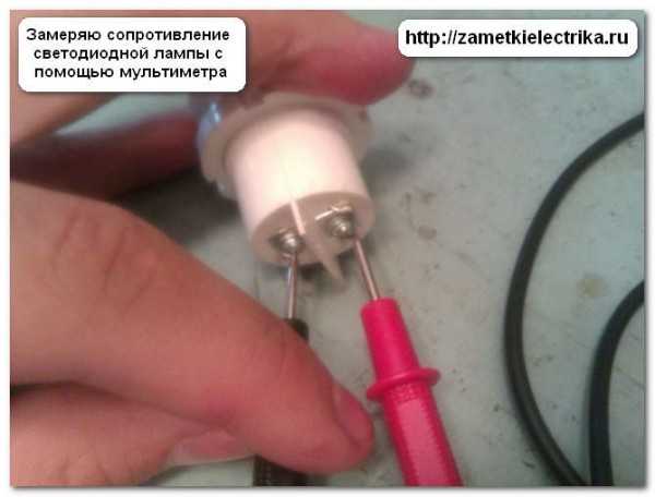 Сопротивление светодиодной лампочки мы измеряем с помощью электроизмерительных клещей или мультиметра.