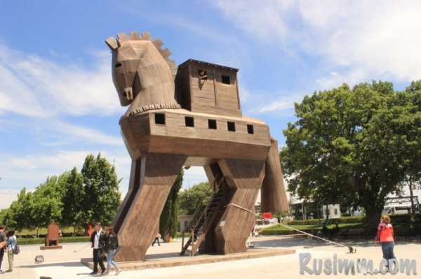 (Ненастоящий троянский конь в настоящей Трое, откопанной Шлиманом. Пригород Чанаккале)