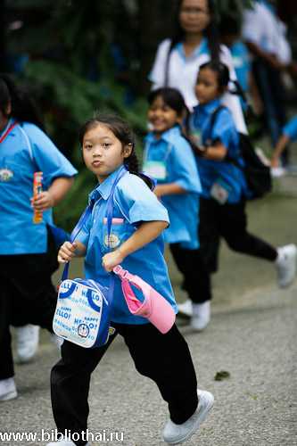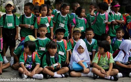 Обучение в ТаиландеЧто касается самих тайцев, то выбор у них огромный. Большинство населения осознает значение хорошего, качественного образования для своих детей, поэтому предпочитает обучать их в платных школах, особенно в международных. Обучение в таких школах по местным меркам недешевое. За год нужно заплатить от 20000 до 150000 Батов (курс 1 Бата примерно 0,3 доллара). В тайских семьях обычно 2-3 ребенка, поэтому дать достойное образование при местном уровне доходов не так просто. Распределение учебного времени в Таиланде зависит от трех климатических периодов: зимы, сезона дождей и лета. Учебный год начинается в конце мая – начале июня. Это время окончания летнего жаркого сезона и начало сезона дождей. Дата начала учебного года не фиксированная и в каждой провинции устанавливается самостоятельно. Первое полугодие заканчивается в октябре. После каникул, которые длятся около месяца, начинается второе полугодие. Это время в Таиланде – зимний период. Учебный год заканчивается в марте, перед началом жаркого летнего сезона, после чего школьники уходят на летние каникулы продолжительностью 2-2,5 месяца. Уроки начинаются в 8-00 и заканчиваются в 16-00. Обычно детей привозят в школу родители или старшие братья и сестры на автомобилях или мотобайках.