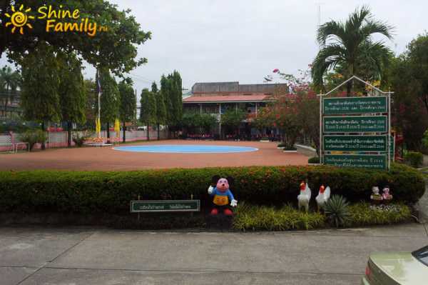 Сейчас мы для Вас проведем небольшую экскурсию по школе и просто будем описывать, что там увидели. Кстати, дети в школах Тайланда начинают учиться с 4 лет. Поэтому наш младший Мишка (4,5 лет) пошел в первый класс, а старший Никитка (6,5 лет) сразу в третий. Все дети в школе имеют статус Студентов. Так что они теперь студенты ).