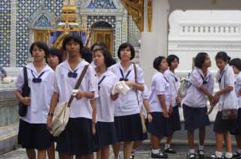 Каждое учебное заведение (государственноеОбучение в Таиланде или частное) имеет жесткие требования к внешнему виду учащихся. Единая форма: тёмный низ, белый верх, белые носки, черные туфли. На блузах и рубашках вышиты логотипы школ. Спортивная форма тоже одного цвета и фасона. Иногда у детей даже одинаковые рюкзаки. Ученикам рекомендованы определенные фасоны стрижек, как для мальчиков, так и для девочек. В прическах девочек разрешены черные заколки. Вид у школьников всегда опрятный. Они гордятся своей формой.
