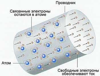 А где же тут может возникнуть электрический ток? Оказывается, что у некоторых веществ (проводников тока) электроны, что наиболее удалены от своего ядра, могут отрываться от атома и переходить на соседний атом. Это движение электронов называется свободным. Просто электроны перемещаются внутри вещества от одного атома к другому. Но вот если к этому веществу (электрическому проводнику) подключить внешнее электромагнитное поле, тем самым создав электрическую цепь, то все свободные электроны начнут двигаться в одном направлении. Именно это и есть движение электрического тока внутри проводника.