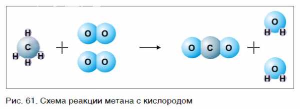 Π Π°ΡΡΠΌΠΎΡΡΠΈΠΌ Π΅ΡΠ΅ ΠΎΠ΄ΠΈΠ½ ΠΏΡΠΈΠΌΠ΅Ρ Ρ ΠΈΠΌΠΈΡΠ΅ΡΠΊΠΎΠΉ ΡΠ΅Π°ΠΊΡΠΈΠΈ ΠΌΠ΅ΠΆΠ΄Ρ Π²Π΅ΡΠ΅ΡΡΠ²Π°ΠΌΠΈ Π‘Π4 (ΠΌΠ΅ΡΠ°Π½) ΠΈ ΠΊΠΈΡΠ»ΠΎΡΠΎΠ΄ΠΎΠΌ. Π‘ΠΎΡΡΠ°Π²ΠΈΠΌ ΡΡ Π΅ΠΌΡ ΡΠ΅Π°ΠΊΡΠΈΠΈ, Π² ΠΊΠΎΡΠΎΡΠΎΠΉΒ ΡΠ»Π΅Π²Π° Π·Π°ΠΏΠΈΡΠ΅ΠΌ ΡΠΎΡΠΌΡΠ»Ρ ΠΌΠ΅ΡΠ°Π½Π° ΠΈ ΠΊΠΈΡΠ»ΠΎΡΠΎΠ΄Π°, Π° ΡΠΏΡΠ°Π²Π° β ΡΠΎΡΠΌΡΠ»Ρ ΠΏΡΠΎΠ΄ΡΠΊΡΠΎΠ² ΡΠ΅Π°ΠΊΡΠΈΠΈ β Π²ΠΎΠ΄Ρ ΠΈ ΡΠΎΠ΅Π΄ΠΈΠ½Π΅Π½ΠΈΡ ΡΠ³Π»Π΅ΡΠΎΠ΄Π° Ρ ΠΊΠΈΡΠ»ΠΎΡΠΎΠ΄ΠΎΠΌΒ (ΡΠ³Π»Π΅ΠΊΠΈΡΠ»ΡΠΉ Π³Π°Π·):