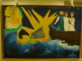 Слева – живопись. Картон, масло. Что-то на библейские темы, но конкретно я не распознала, а подписей не было.