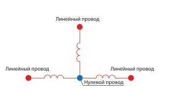 Соединение звездой подразумевает, что концы всех трех обмоток сходятся в одной нулевой точке. Исходя из закона Кирхгофа, следует, что сумма всех токов в этой точке (узле) равняется нулю, поэтому никакого замыкания не происходит. Из нулевой точки выводится нулевой провод. Напряжение, замеренное между этим проводом и любым из трех линейных, в 1.73 раз меньше, чем значение напряжения между самими линейными проводами. В первом случае получается фазное напряжение, а во втором линейное.