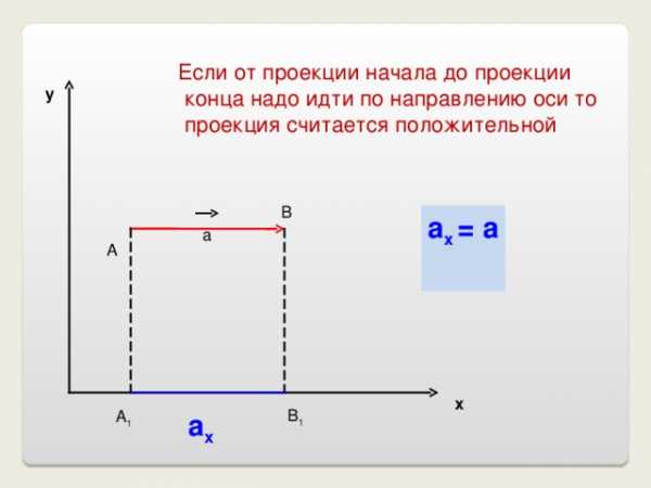 Проекция вектора может быть положительной или отрицательной (в зависимости от его положения относительно оси координат):