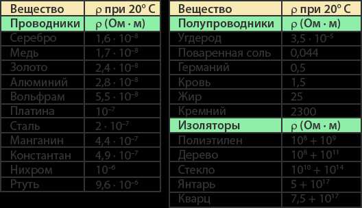 Единица измерения удельного сопротивления: . По удельному сопротивлению мы можем судить о материале и о том, как его можно использовать. Все удельные сопротивления известных нам материалов собраны в таблице: