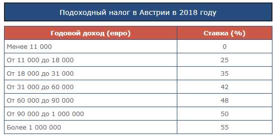 Все австрийцы и иностранные работники с видом на жительство в Австрии уплачивают налоги и обязательные социальные платежи с заработных плат. В стране действует прогрессивная ставка подоходного налога, которая достигает 55% при заработке более 1 млн евро в год.