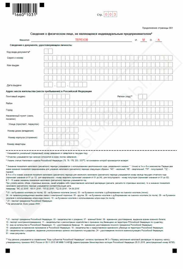 Третью страницу необходимо заполнять только гражданам, которые не являются ИП. Также здесь прописываются паспортные данные и сведения о прописке заявителя. Если в тексте документа отражена информация о вашем ИНН, то этот лист заполнять не обязательно.